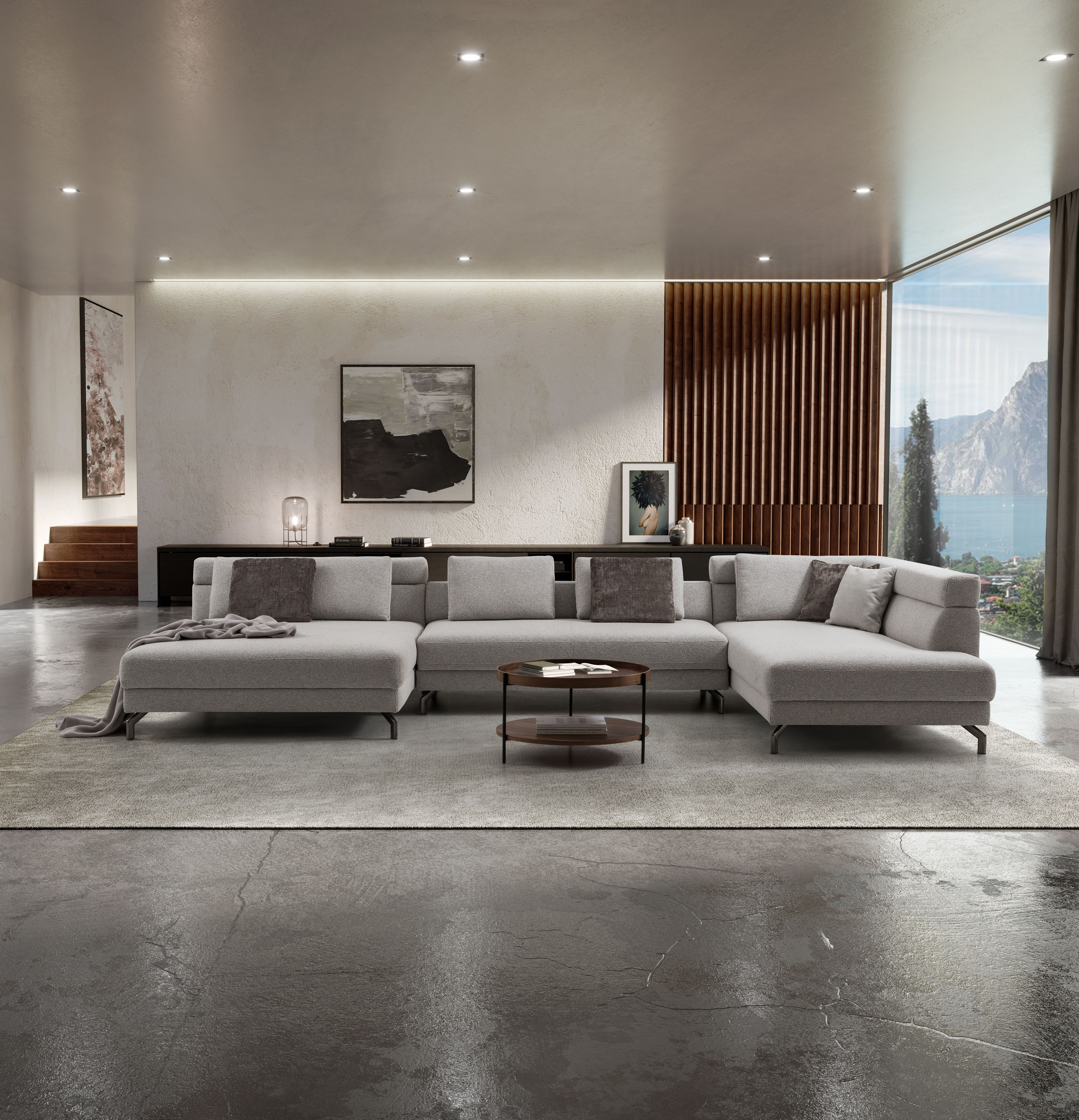 Wohnlandschaften hier, hochbeinige und grazile Sofas als Blickfang da. Auch das Auge wohnt mit. Deshalb schaffen zwischendurch oft schwarze, aber auch glänzend silberne oder farbig lackierte Metallgestelle farbige und designtechnische Kontraste – und wirken dadurch platzsparend und dennoch sehr elegant.